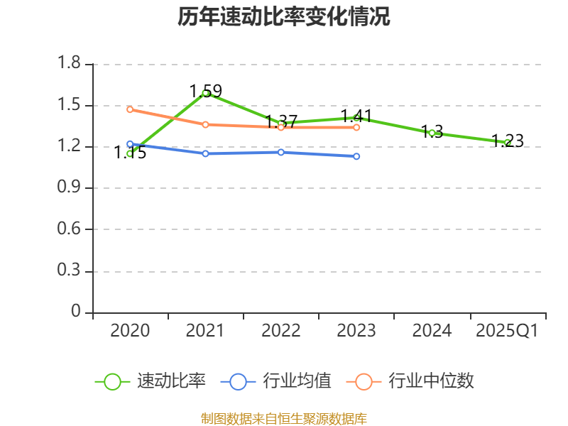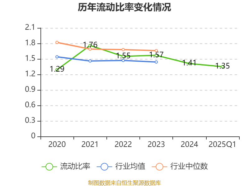 2025年第一季度,公司流动比率为1.35,速动比率为1.23。