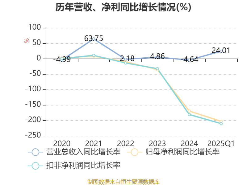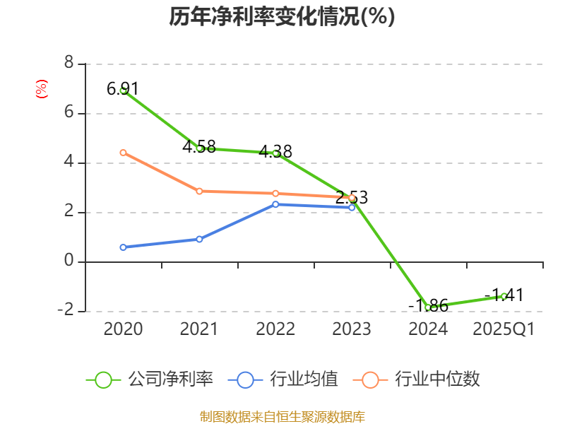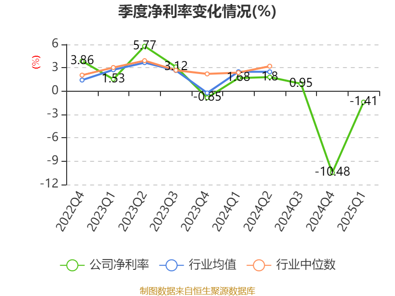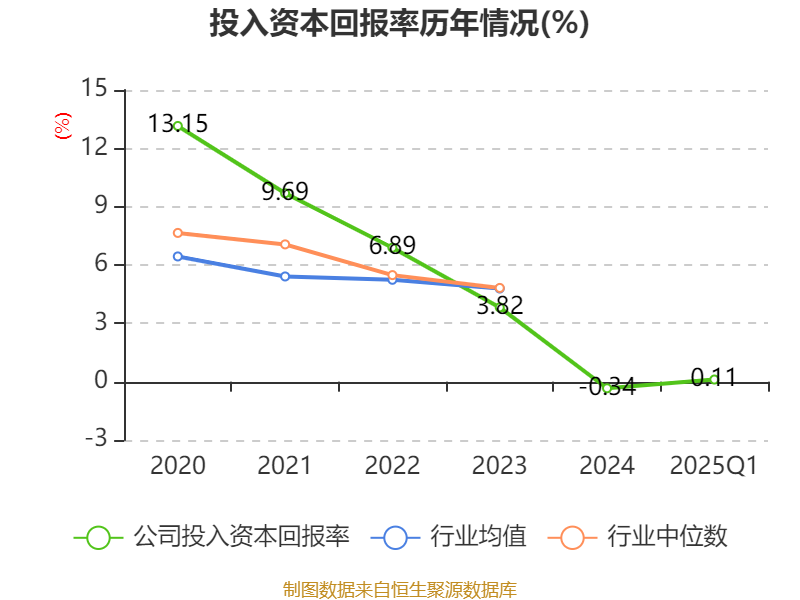 盈利能力方面, 2025年一季度公司加权平均净资产收益率为-0.65%,同比下降0.94个百分点。公司2025年第一季度投入资本回报率为0.11%,较上年同期下降0.64个百分点。