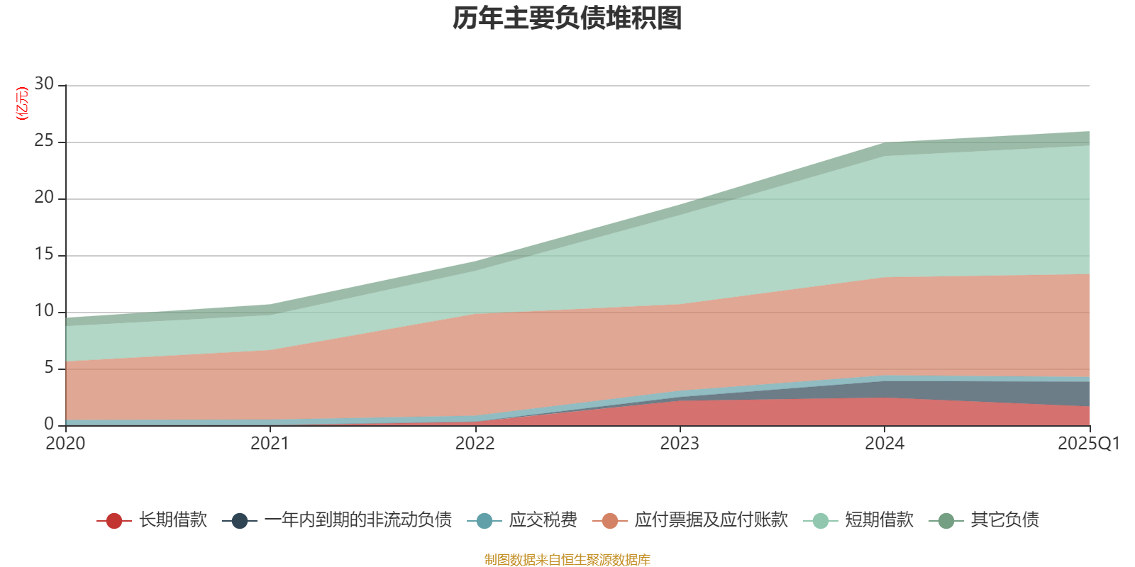 负债重大变化方面,截至2025年一季度末,公司长期借款较上年末减少32.31%,占公司总资产比重下降2.36个百分点;一年内到期的非流动负债较上年末增加51.36%,占公司总资产比重上升1.95个百分点;短期借款较上年末增加6.07%,占公司总资产比重上升1个百分点;应付票据及应付账款较上年末增加4.91%,占公司总资产比重上升0.54个百分点。