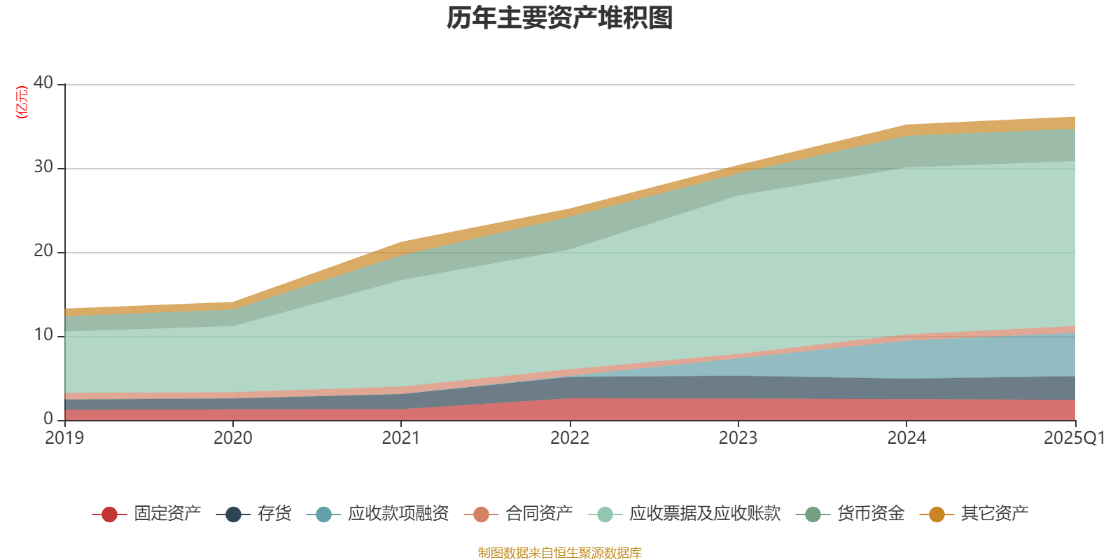 资产重大变化方面,截至2025年一季度末,公司应收票据及应收账款较上年末减少1.2%,占公司总资产比重下降2.13个百分点;应收款项融资较上年末增加14.2%,占公司总资产比重上升1.44个百分点;存货较上年末增加15.22%,占公司总资产比重上升0.85个百分点;固定资产较上年末减少3.03%,占公司总资产比重下降0.39个百分点。